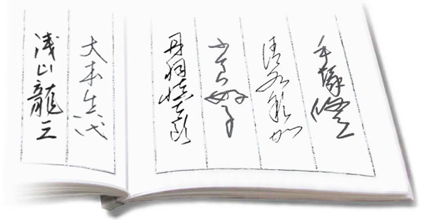 ![]() top どのように変化させても 『 文字学的に読める文字 』 という制約の中での名前漢字サイン創作です。 コピーではなく、実際に書いた肉筆見本を郵送でお送りいたします。 |